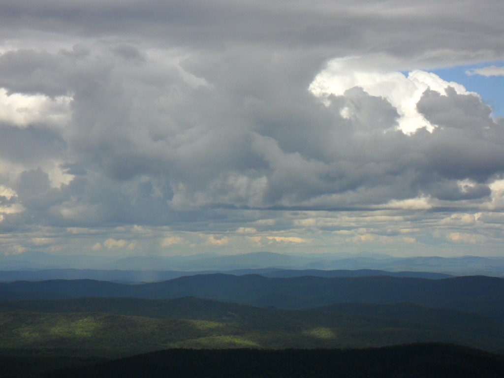 Because of the cleared slopes there are plenty of views below alpine. Additionally, the slopes become steep meadows with blossoming flowers in the warmer months. A summer storm suddenly passed over as I was hiking up the mountain. A little thrill, then it quickly went on its way.